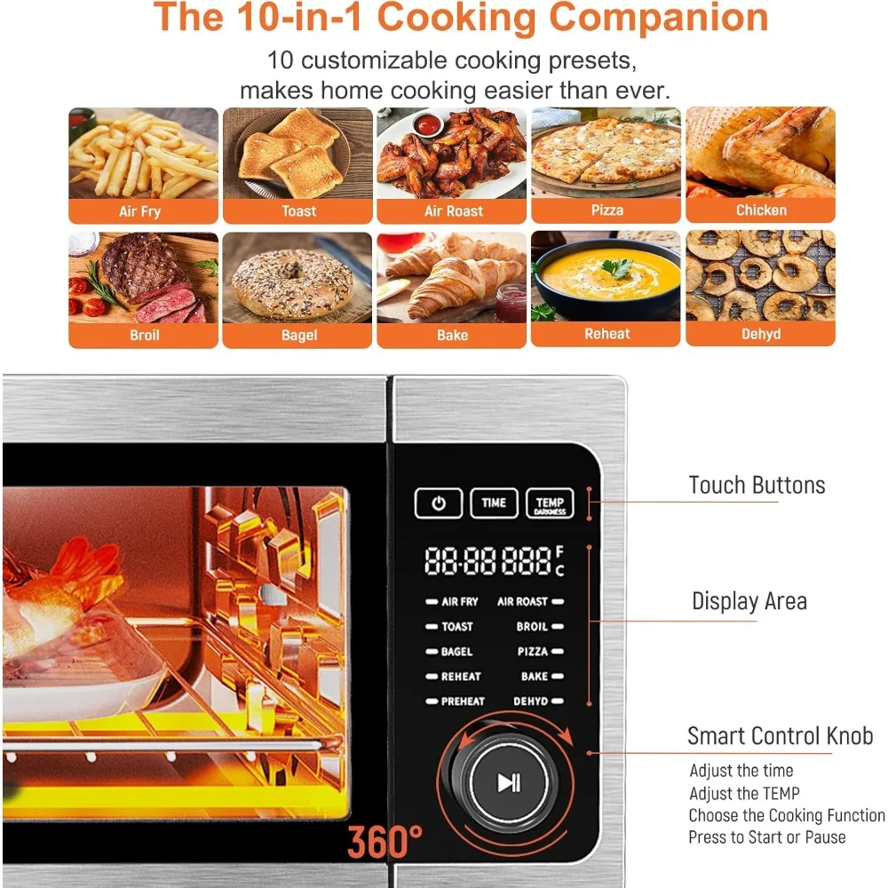 10-in-1 Toaster Ovens Countertop 1800W, 100-450°F Temperature Control