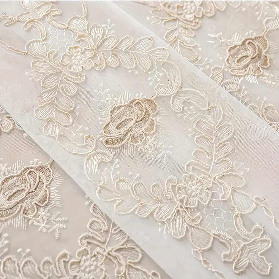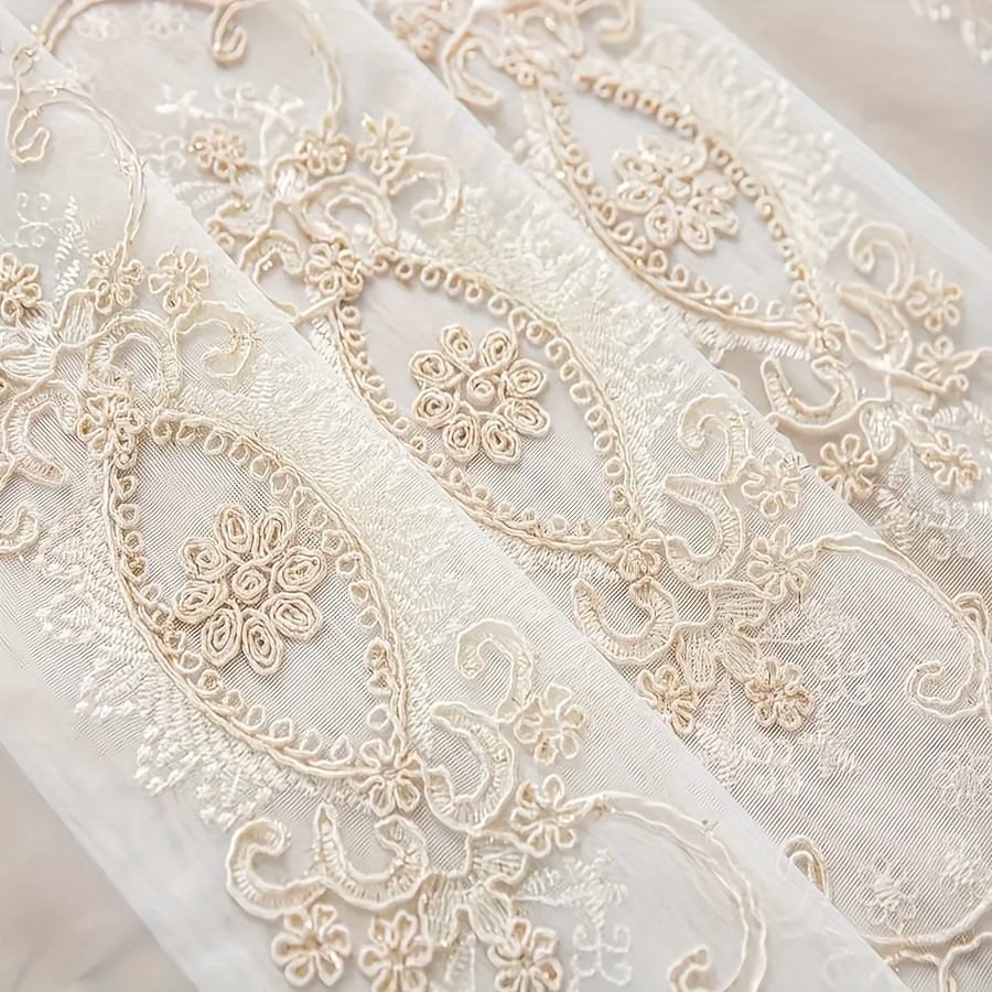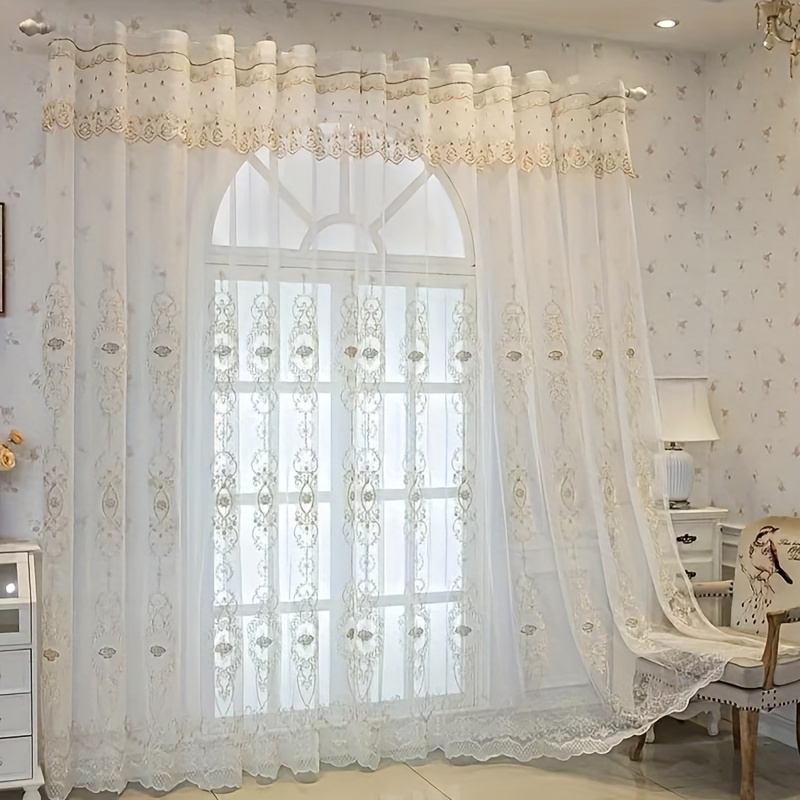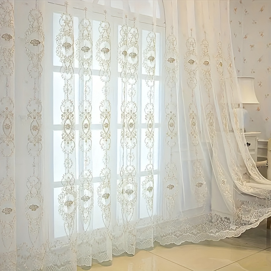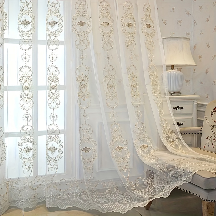 2pcs Modern Embroidered Floral Pattern Sheer Curtains, Rod Pocket Design, Machin