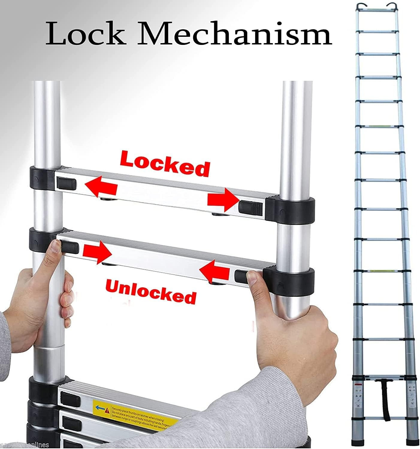 · ▶Easy to Operate: For extension, start from the top and extend each step fully, then you can hear the "click" sound (confirm both left/right locks are in place); for retraction, start from the bottom and unlock one step by step (Do not put your hand/fingers between the step spacing when it retracts to avoid your fingers being pinched);