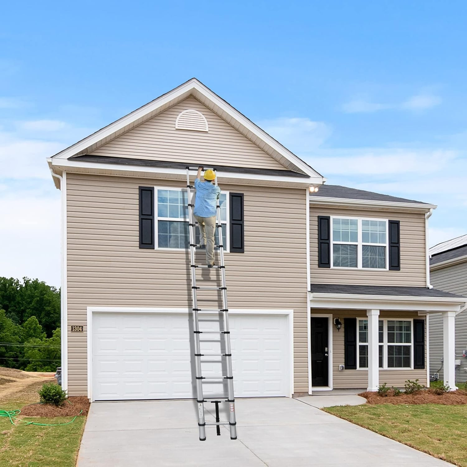 · ▶Extension and Retraction Design: The ladder is extendable from handy 98cm (3.2ft) to 5M (16.4ft). With inward slide latches, you can adjusts the height of the ladder rung by rung to fit specific requirement such as repairing ceiling lights, hanging picture frames or painting walls;