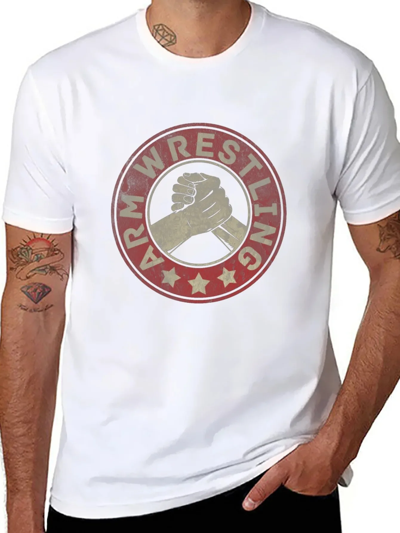 Arm Wrestling Graphic Men's T-Shirt Short Sleeve Cotton Tees Summer Shirt Oversi