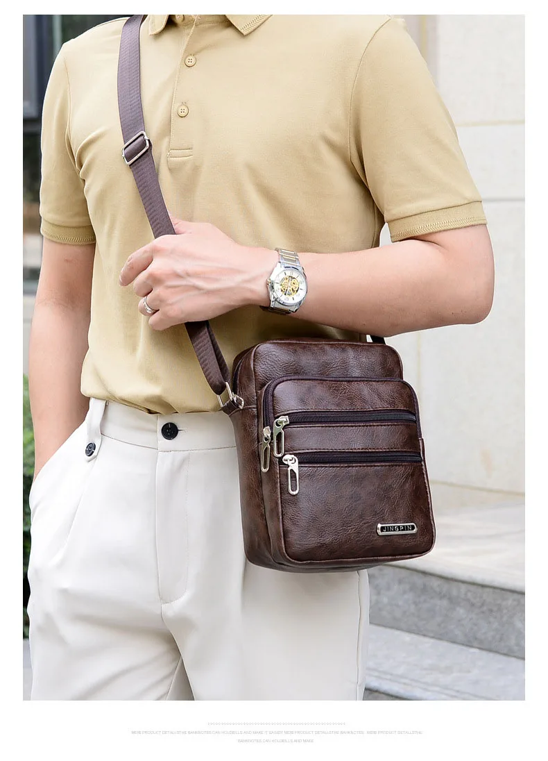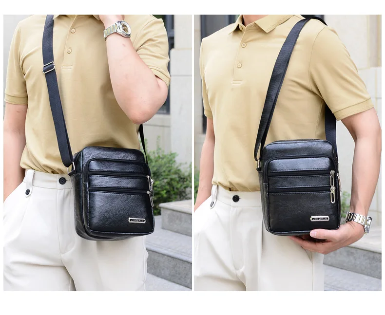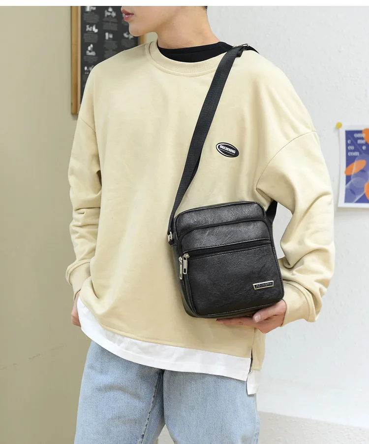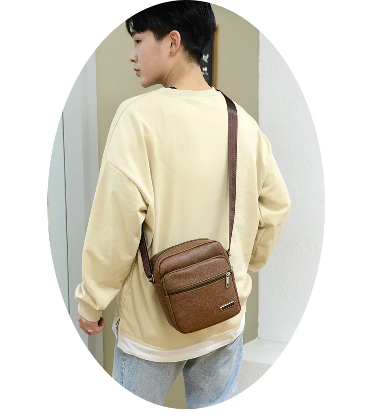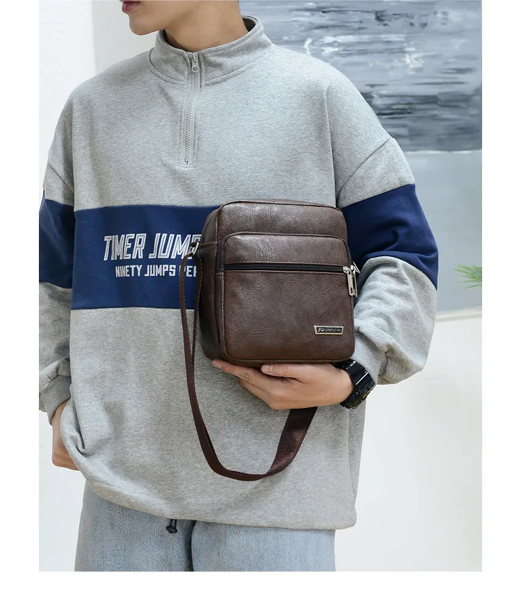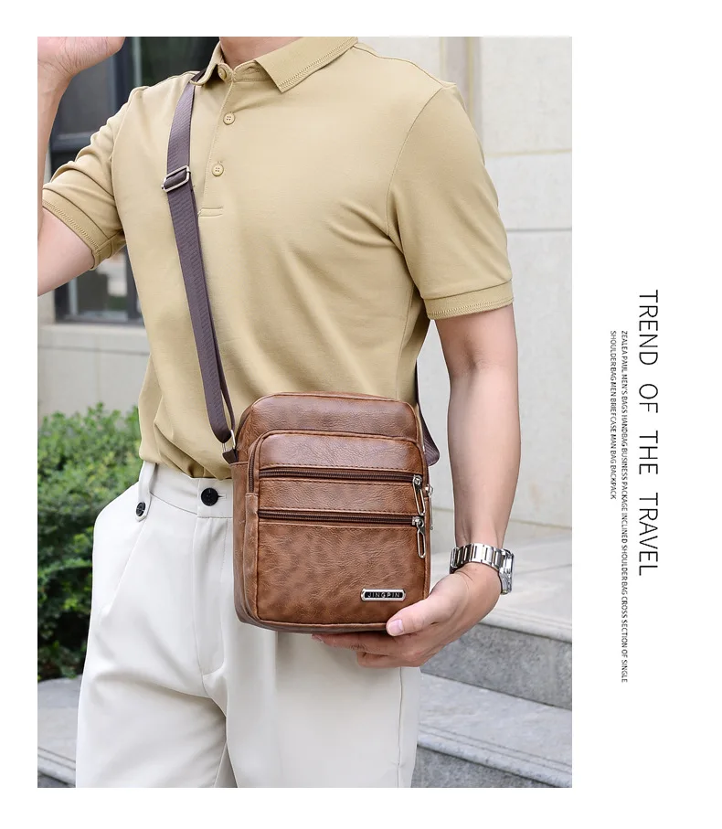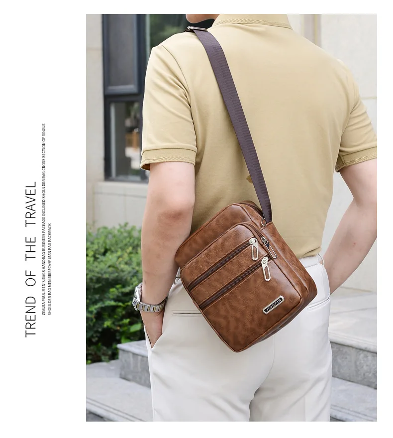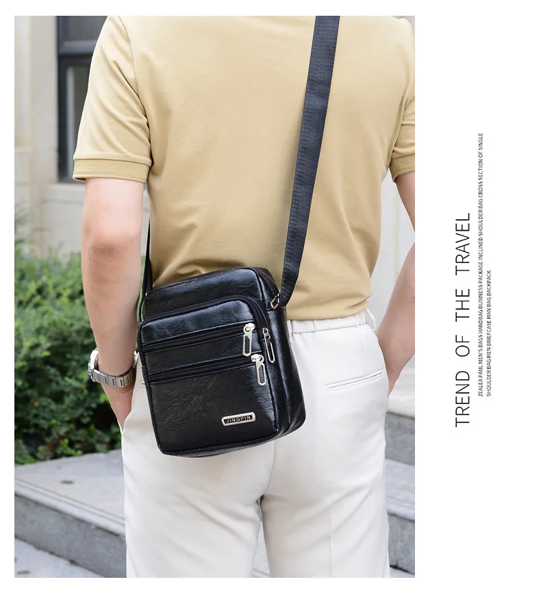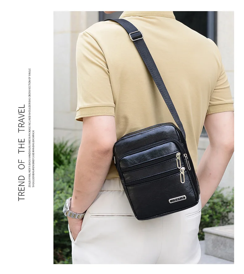 Casual Men's Shoulder Bags PU Leather Handbag Men Travel Sling Bag Large Capacit