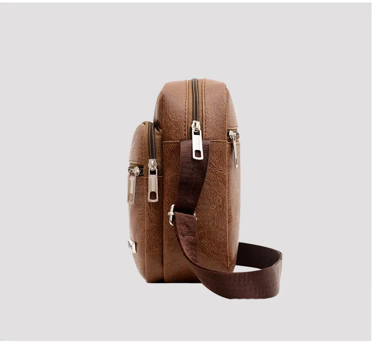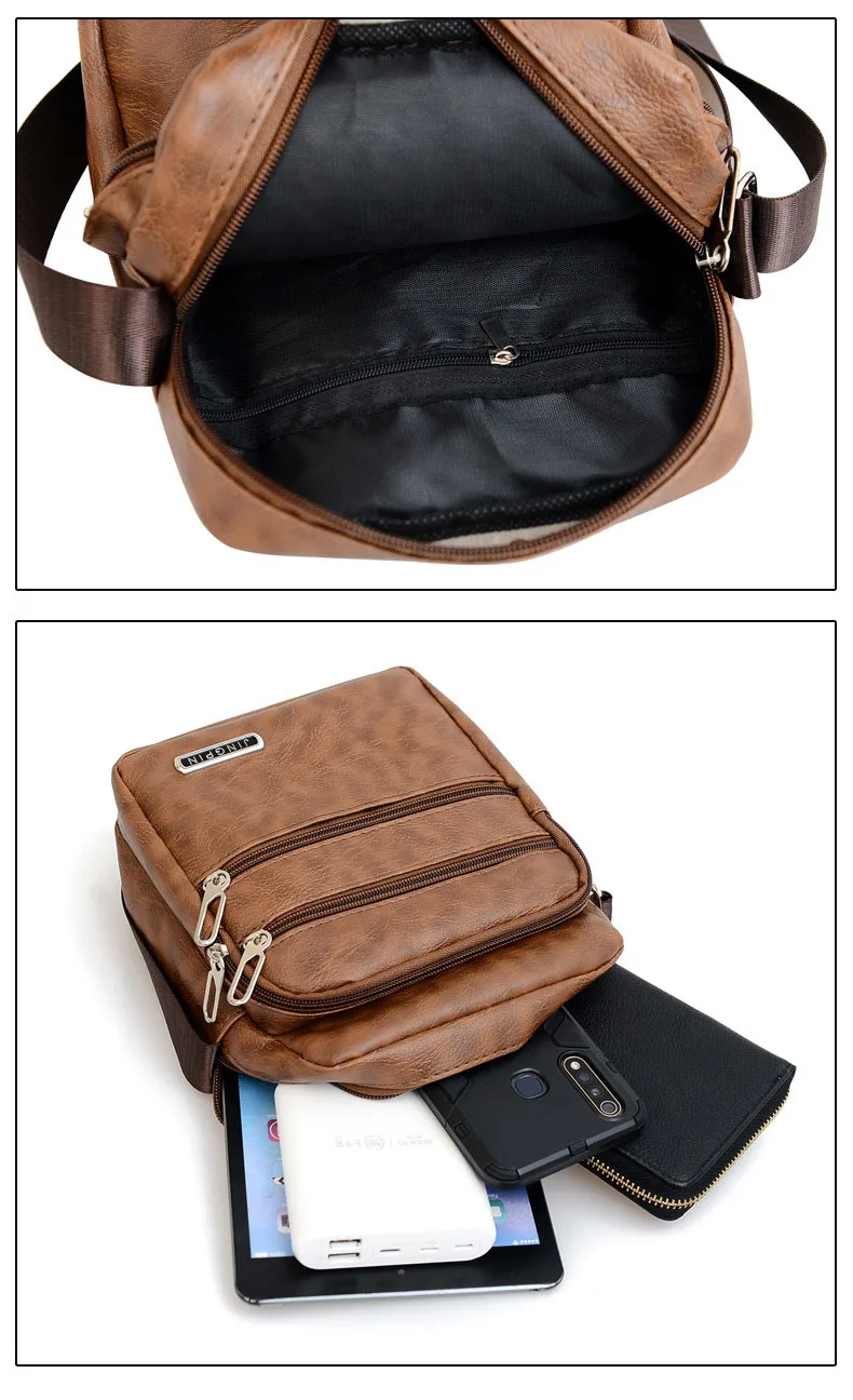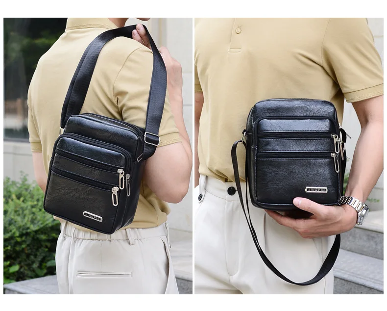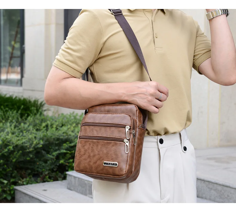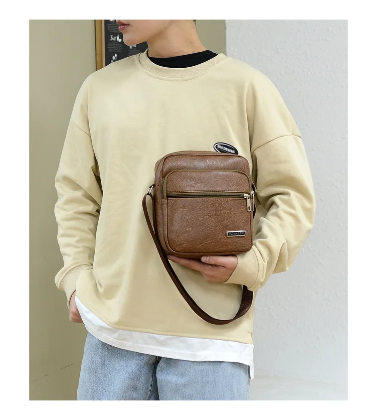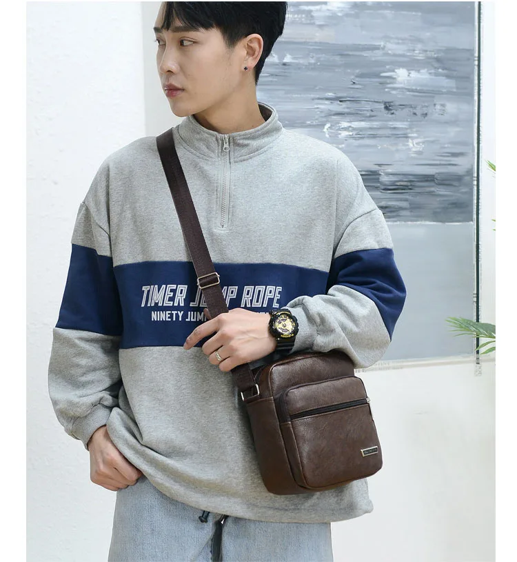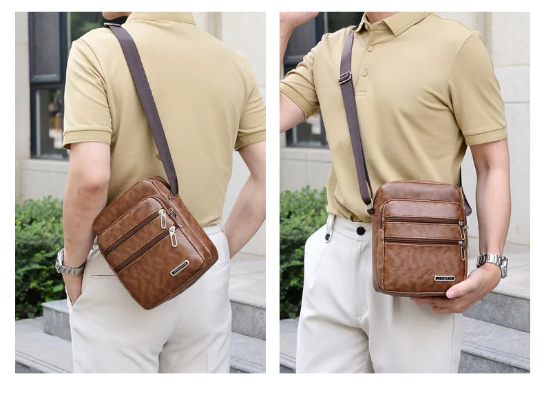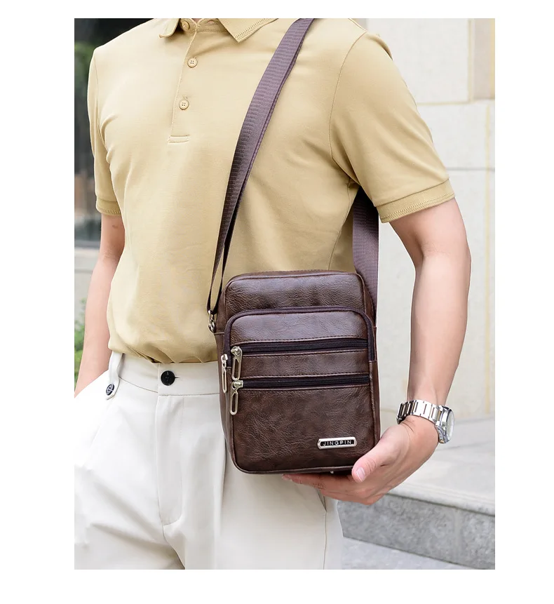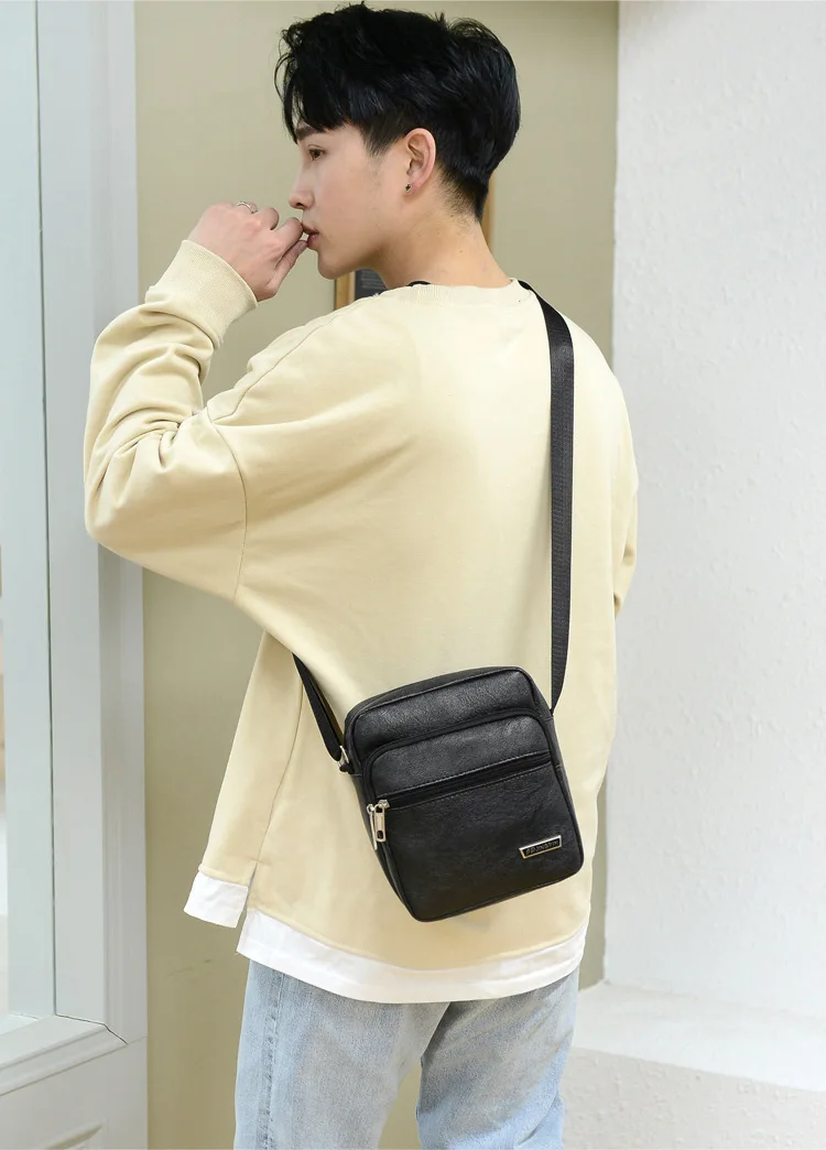 Casual Men's Shoulder Bags PU Leather Handbag Men Travel Sling Bag Large Capacit