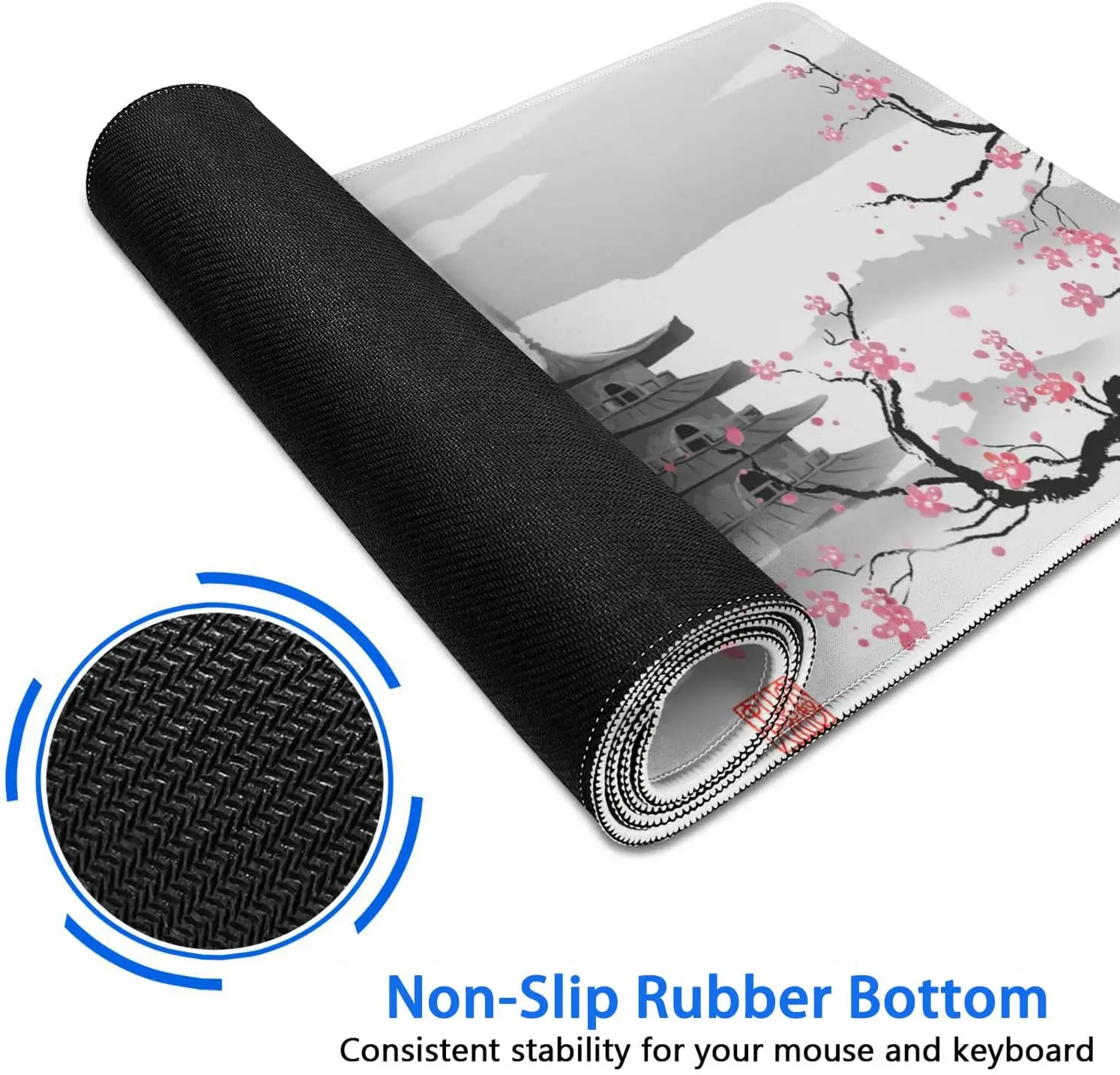 Cute mouse pad pattern: the extended mouse pad withc cherry blossoms, can keep you in a good mood during use, and also make the mouse pad a beautiful desk office or room decor.