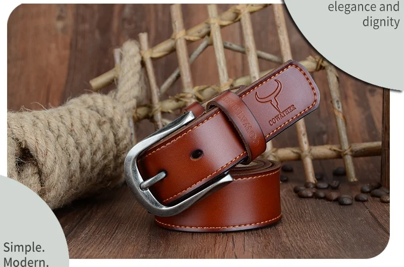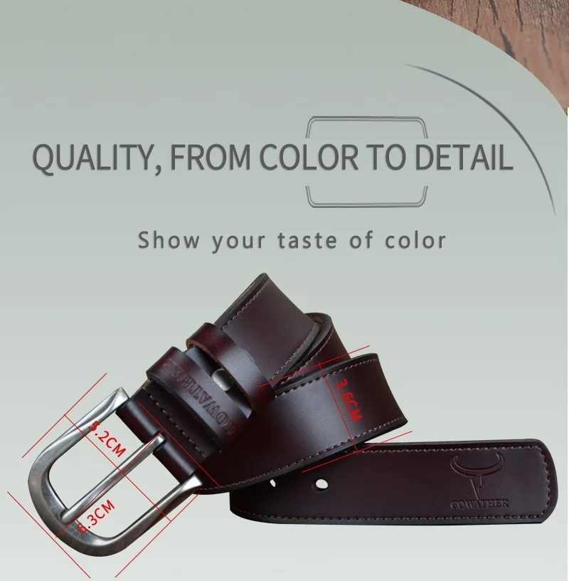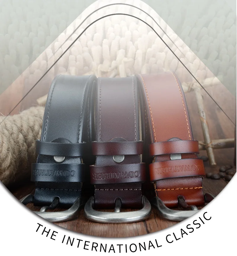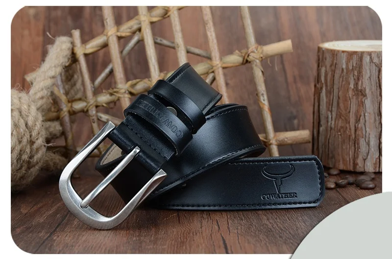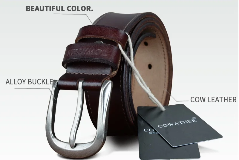 COWATHER 2021 fashion pin buckle cow genuine leather mens belt for men three col