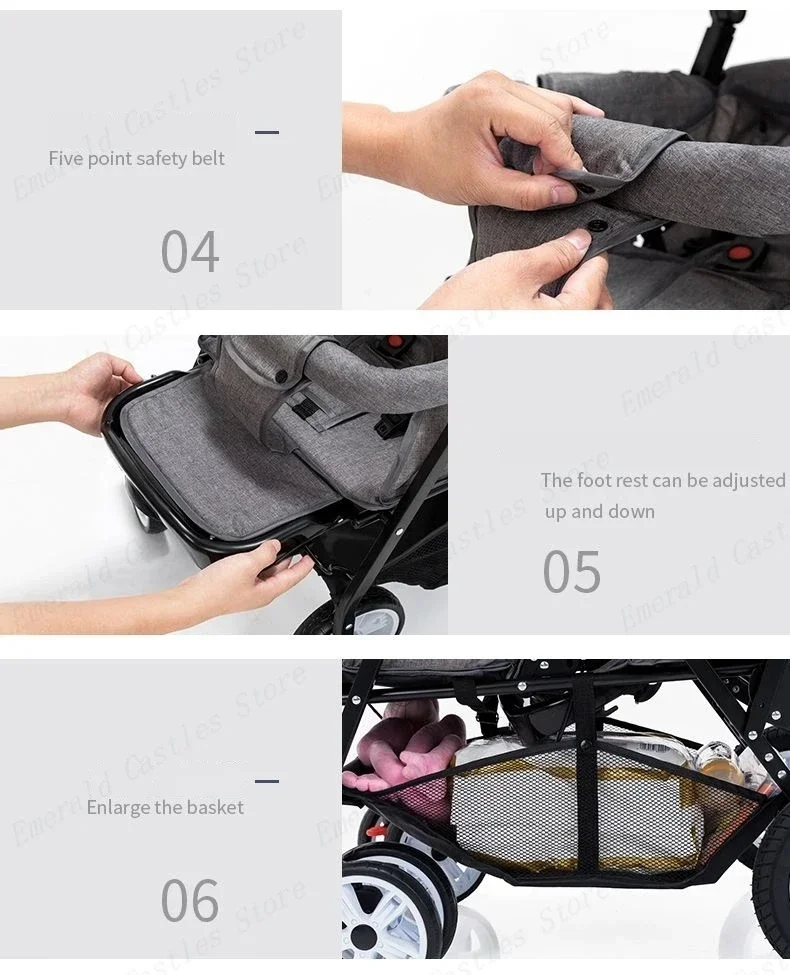 Double Strollers For Baby Twins Lie Foldable Child Cart With Front And Back Seat