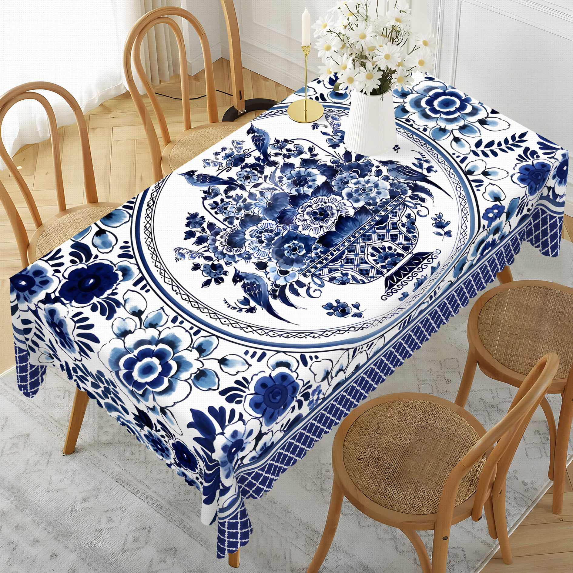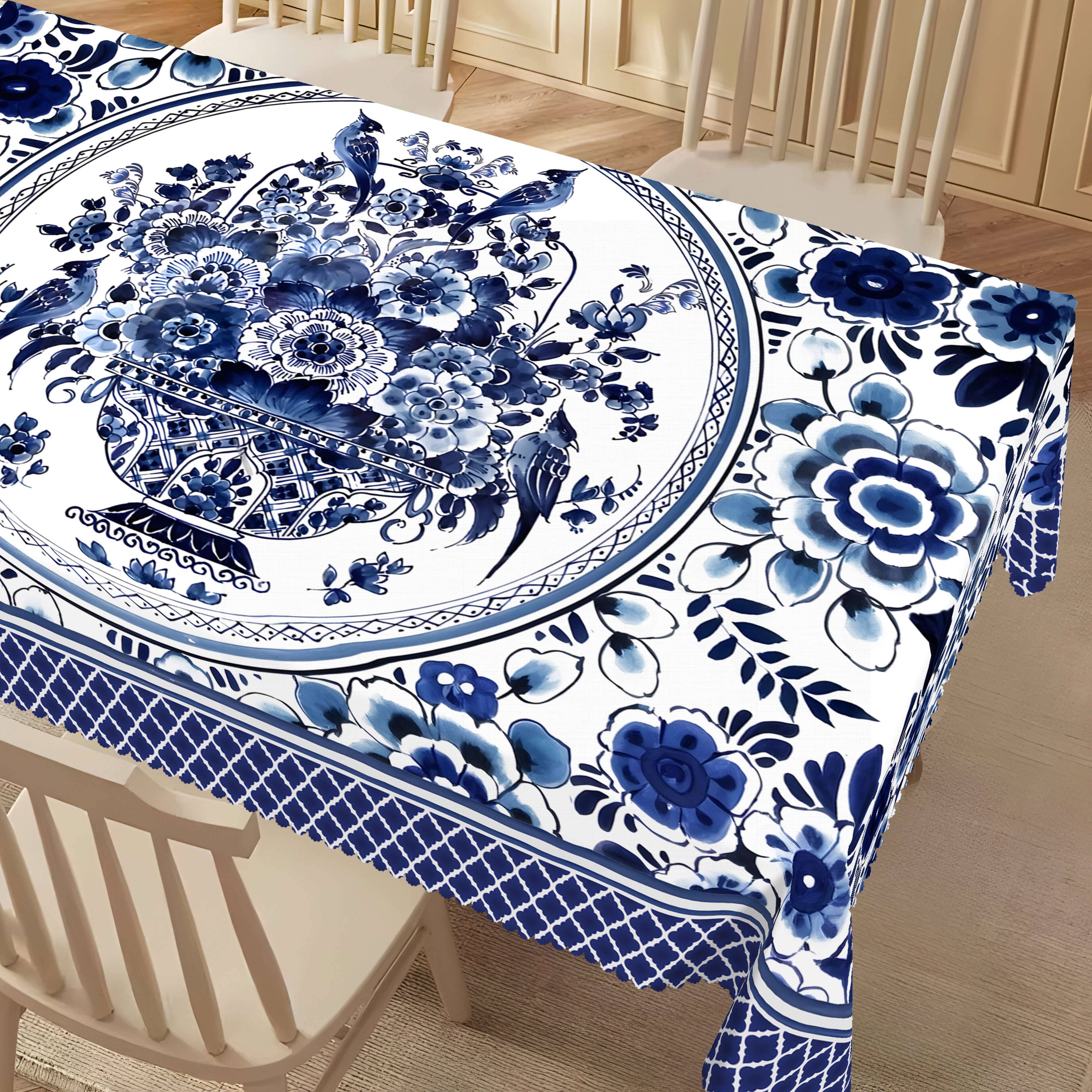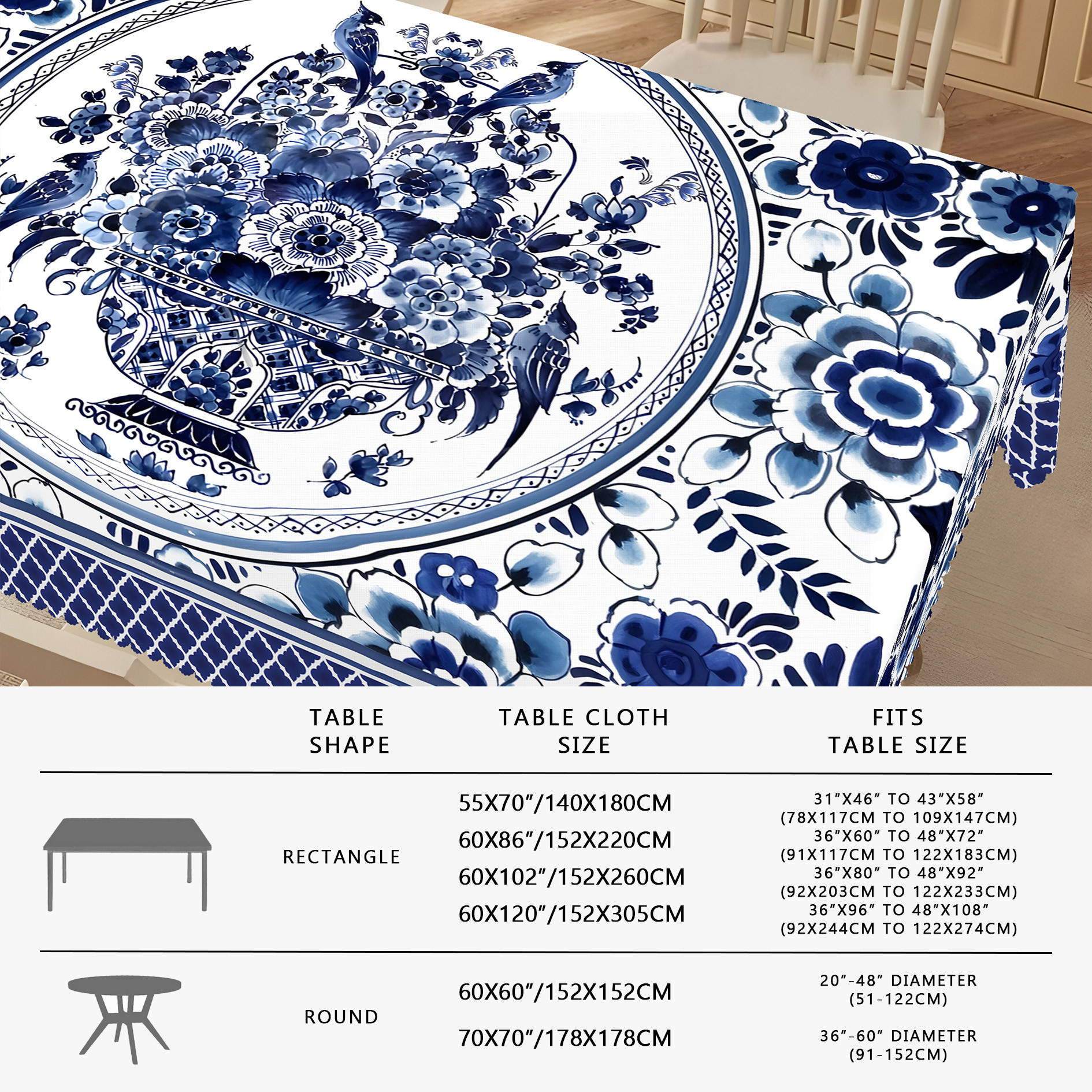 Elegant Blue & White Floral Tablecloth - Traditional Chinese Ceramic Design, Int