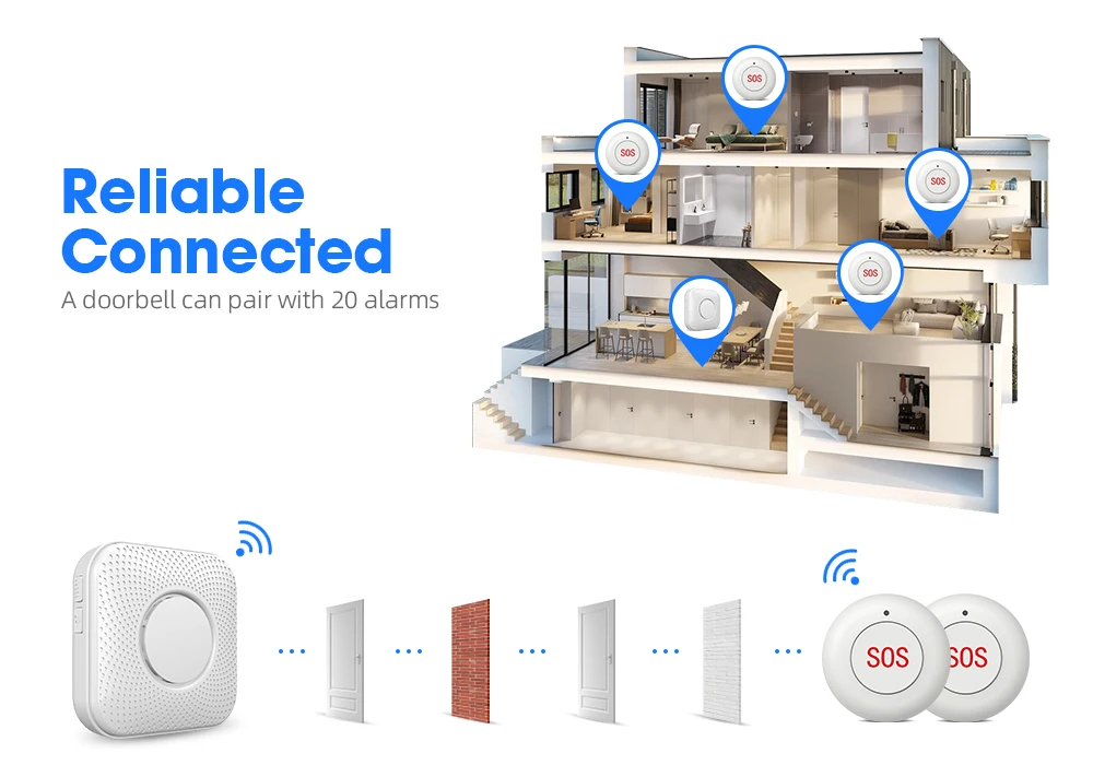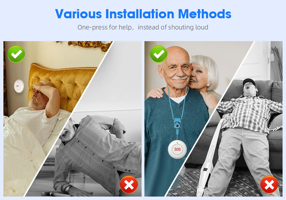 Emergency Button Wireless Remote Call SOS Button 433MHz Caregiver Pager Home Sec