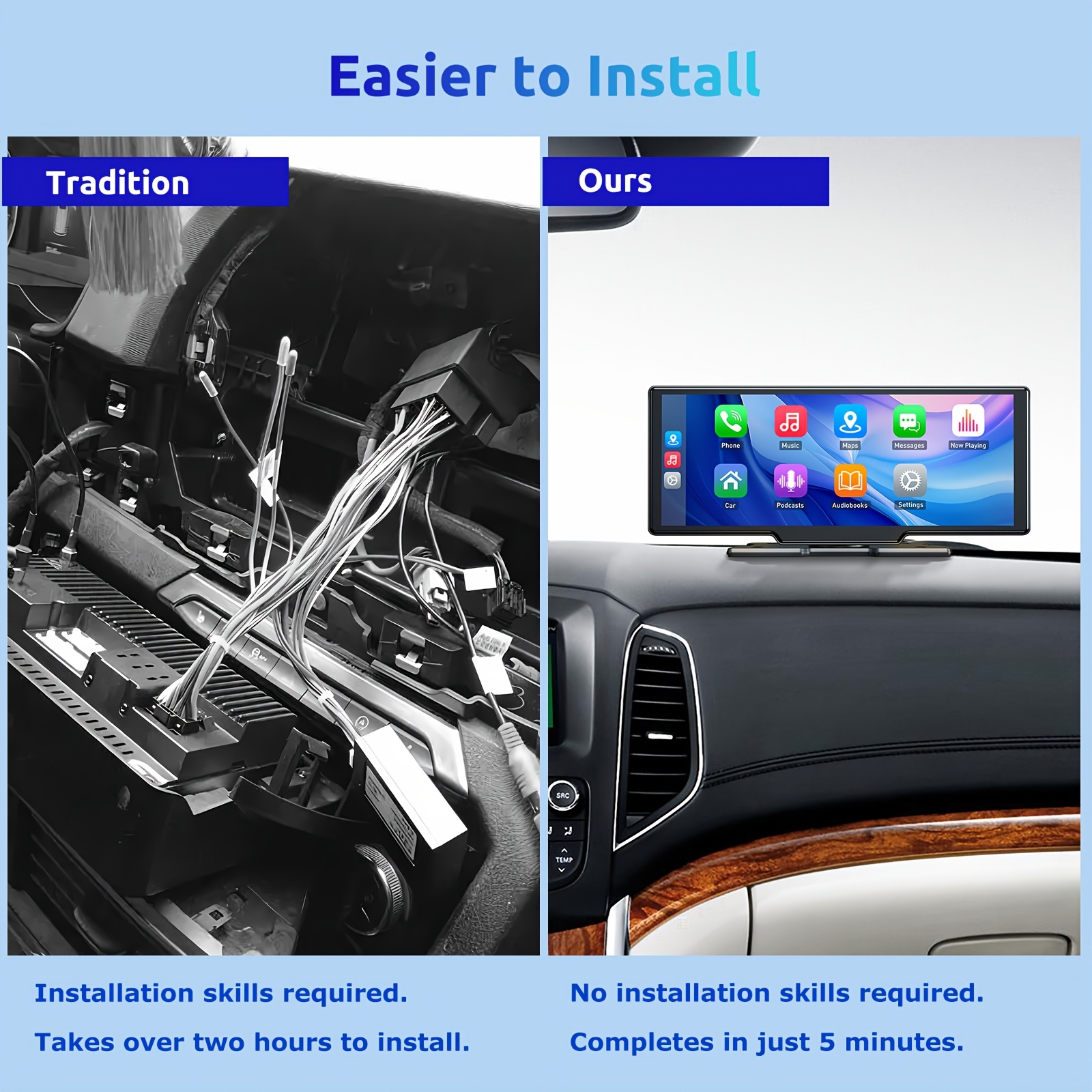 Package including:1x Carplayer1x Soft Silicone Pad1x Sticker Bracket1x 1080P Rear Camera1x User Manual1x AUX Cable1x Power Cable1x 64G Memory Card