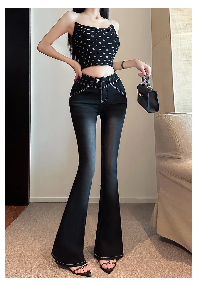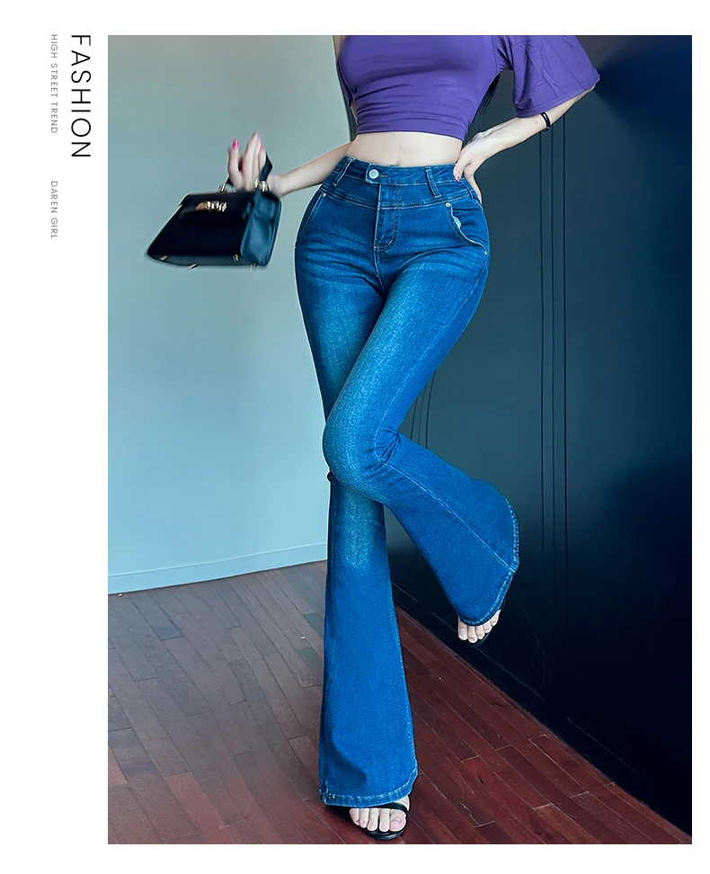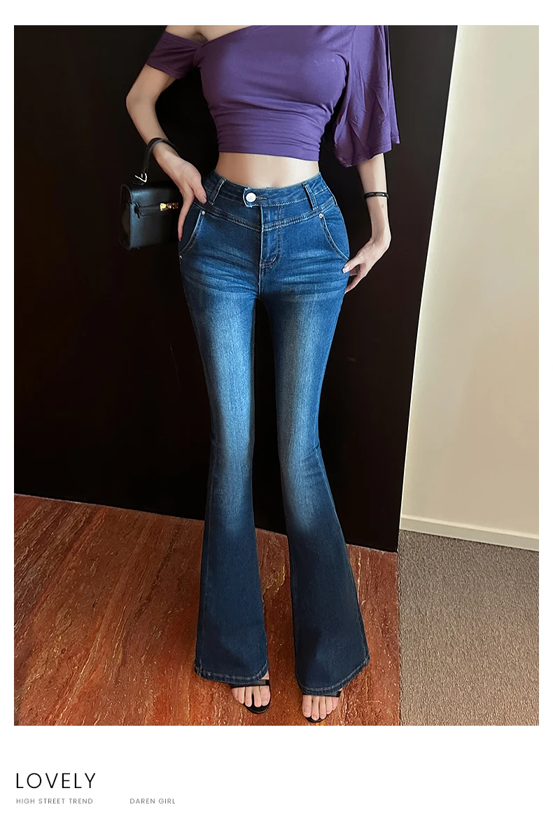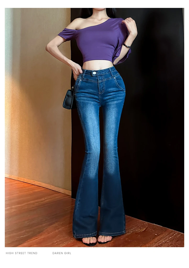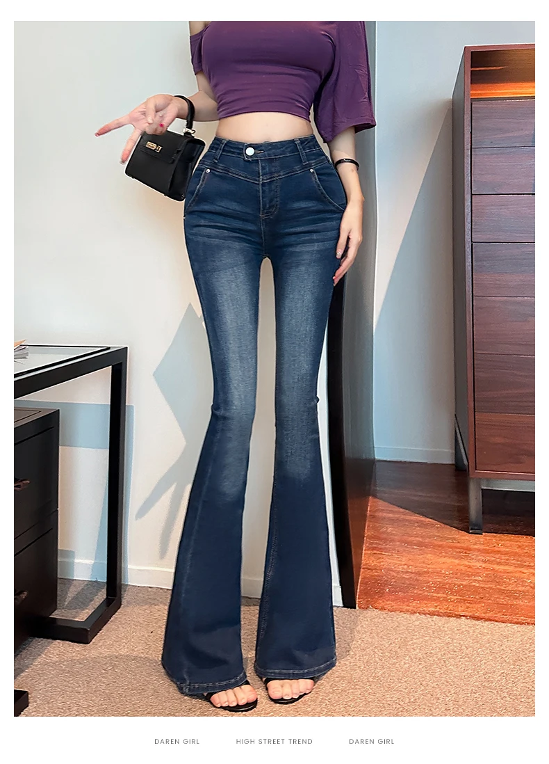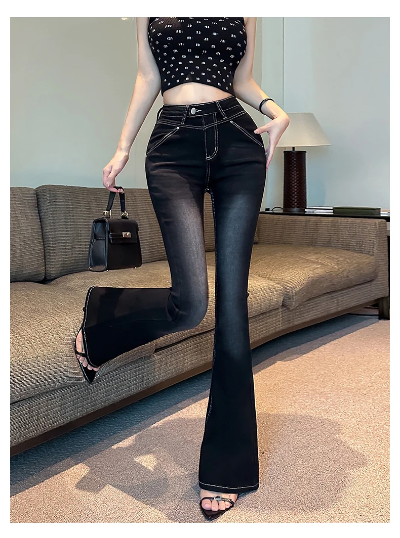 Featuring a bell bottom style, these jeans add a trendy touch to any outfit, making them a versatile addition to your wardrobe.