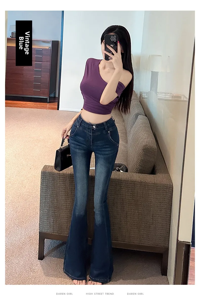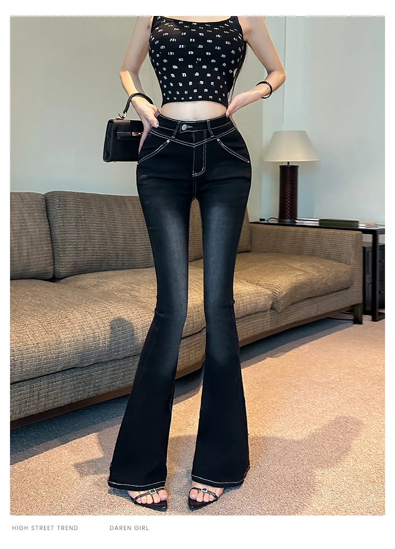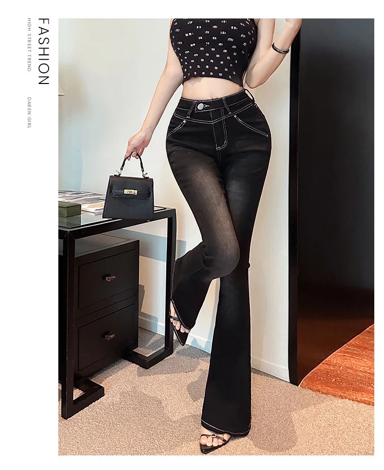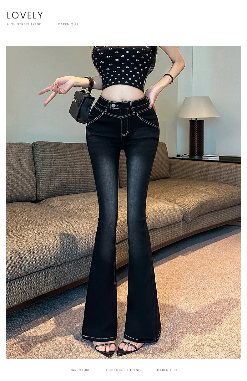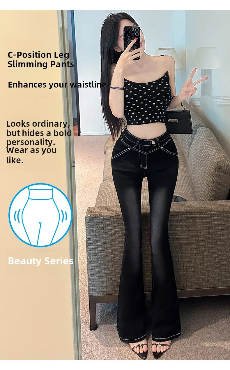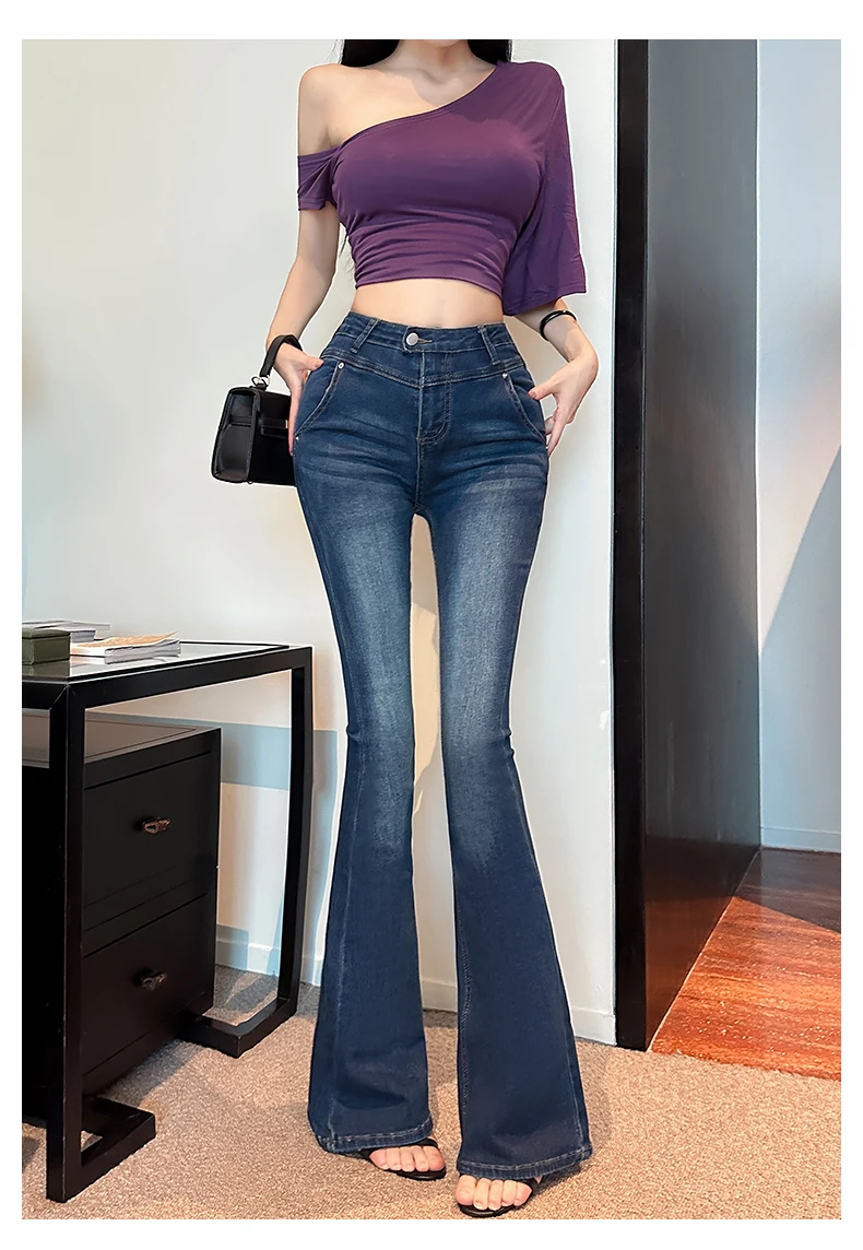 Featuring a bell bottom style, these jeans add a trendy touch to any outfit, making them a versatile addition to your wardrobe.