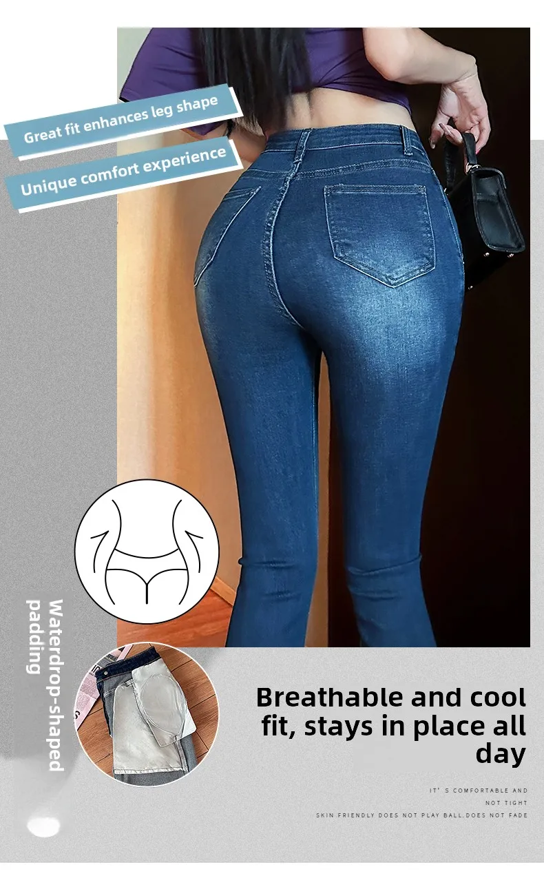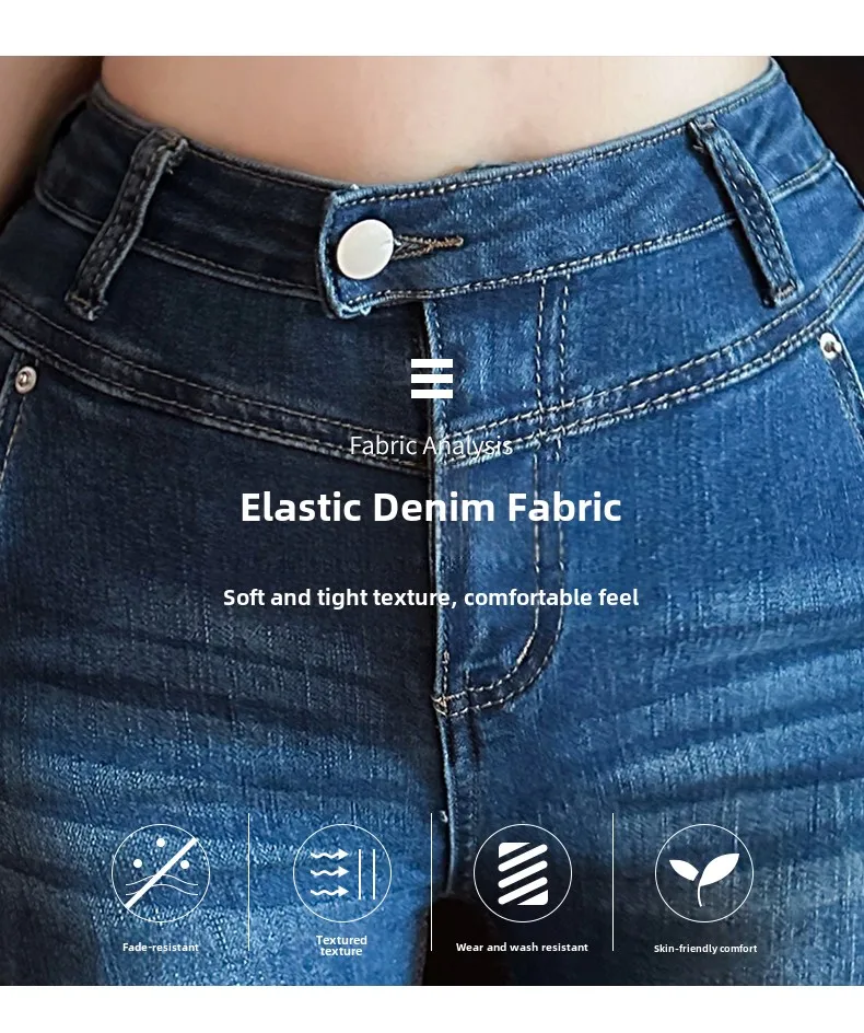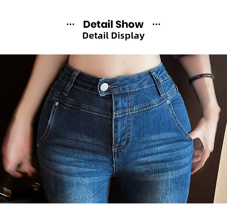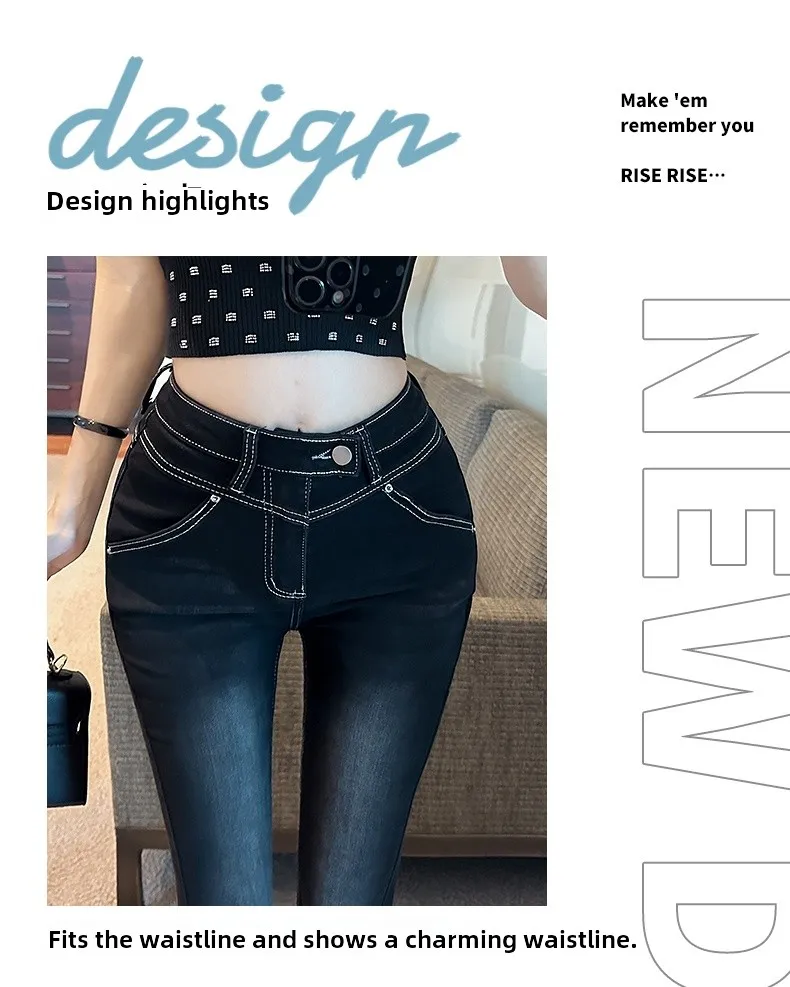 The high-waisted design of these jeans accentuates the waistline, providing a flattering silhouette for young women aged 18-24.