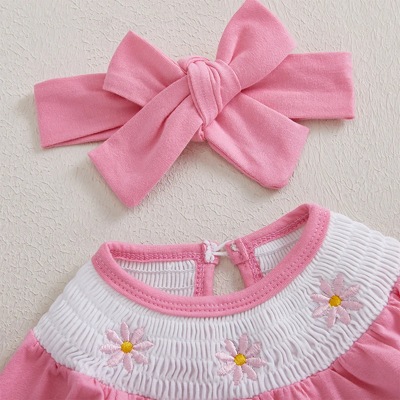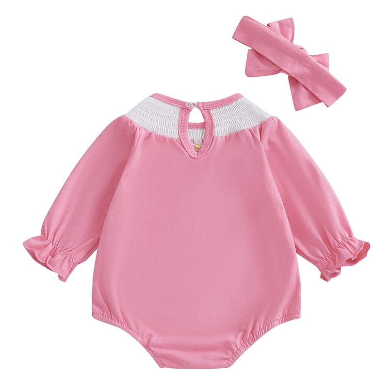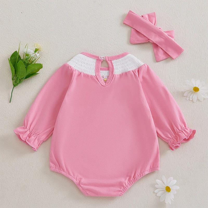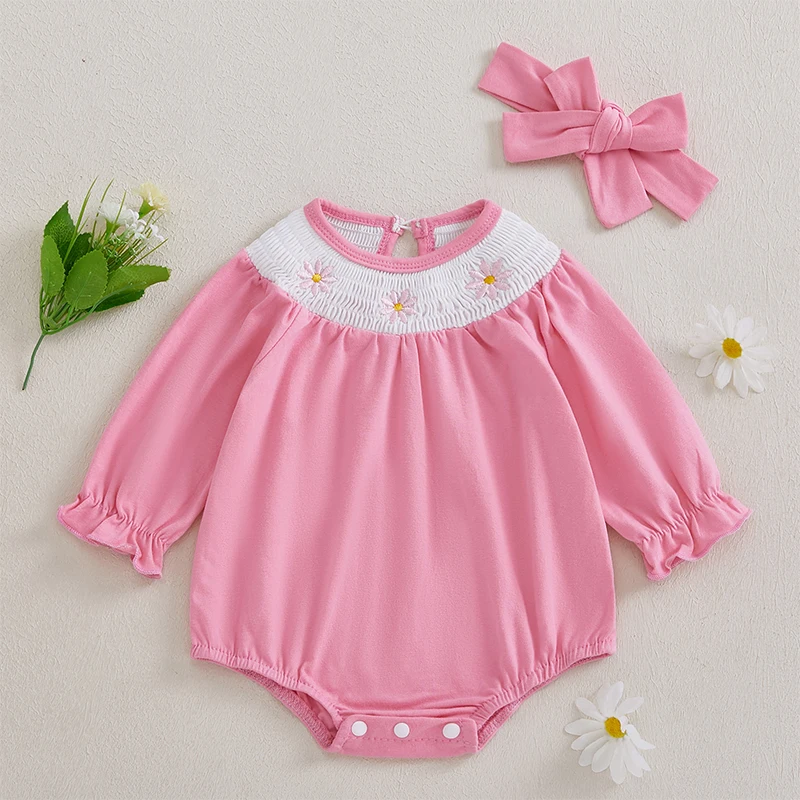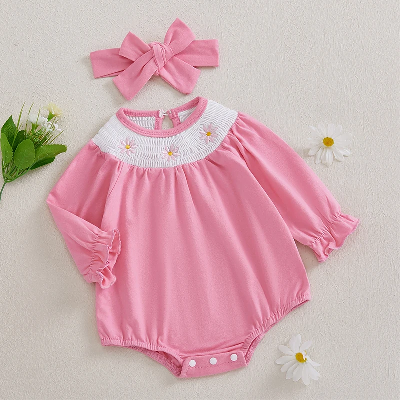 Infant Baby Girl Outfit Long Sleeve Smocked Floral Embroidered Bubble Romper New