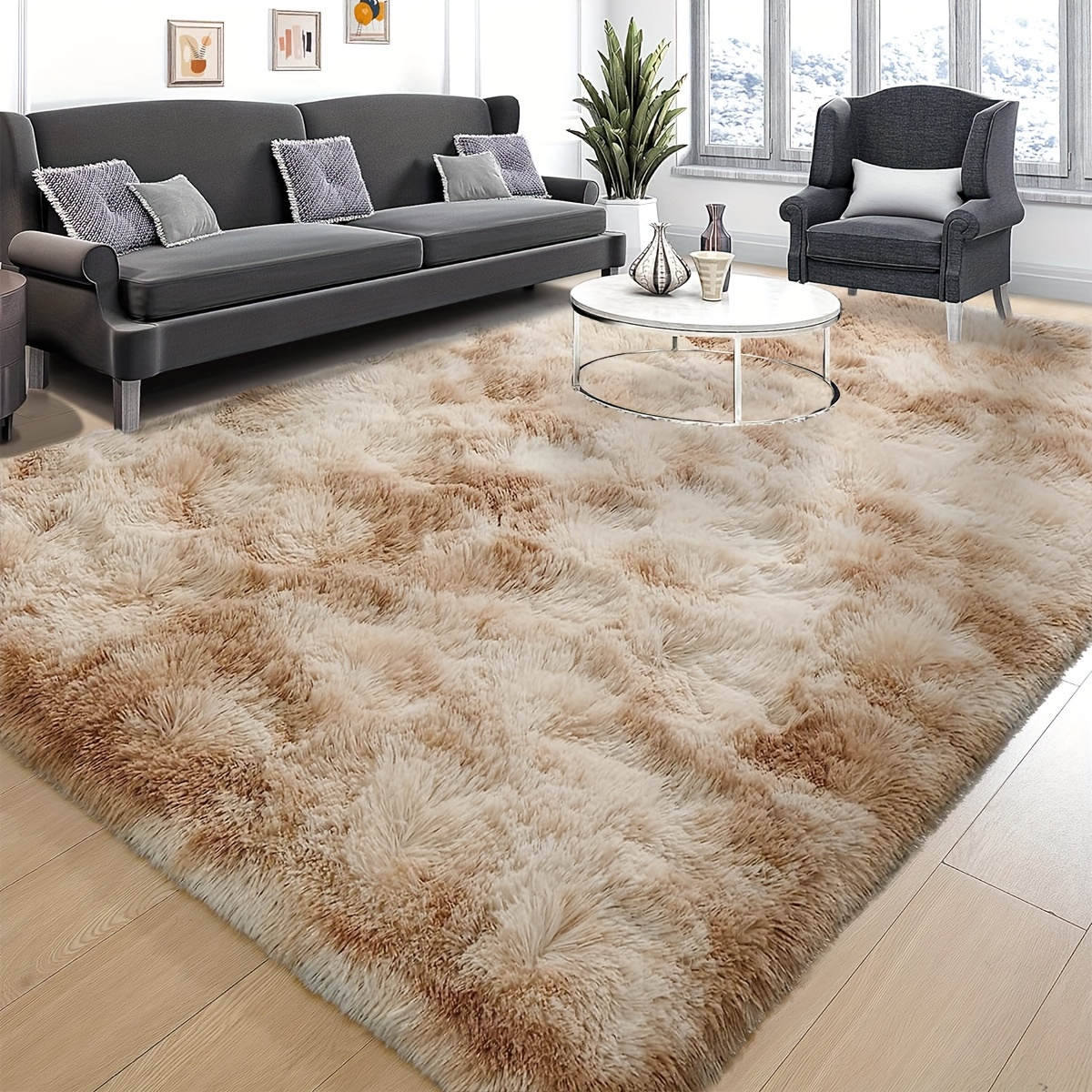 Luxurious Long Plush Shag Area Mat - Soft, Fluffy Beige & Brown Mat for Living R