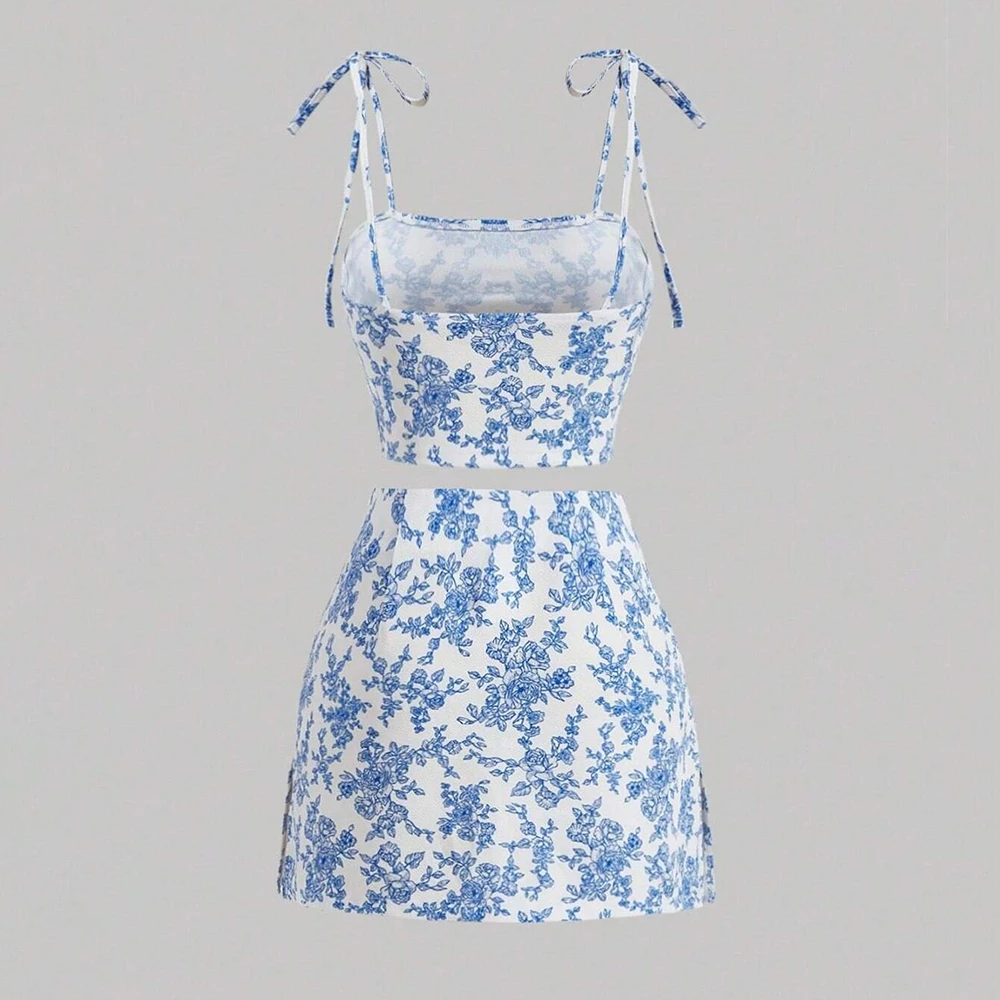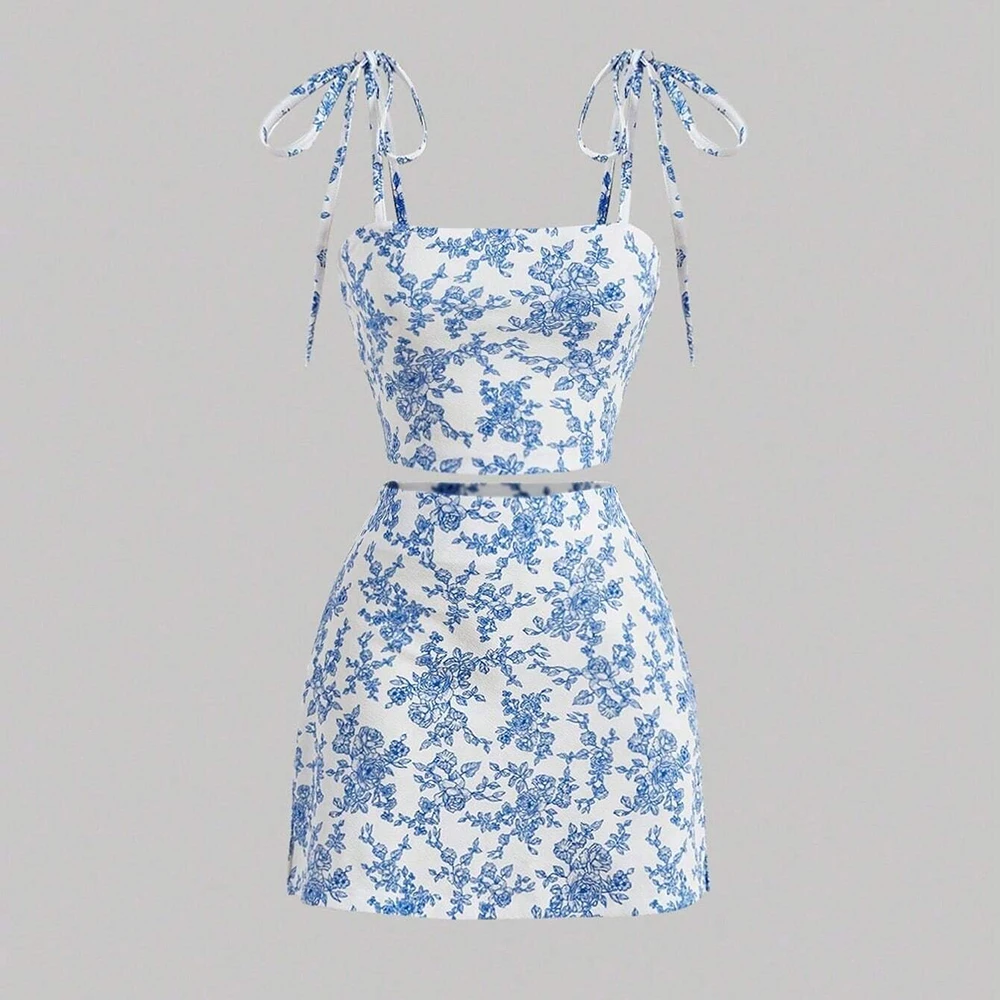 Mia Muse Sets Spring Summer Korean Fitting Slim Floral Sleeveless Square Neck Mi