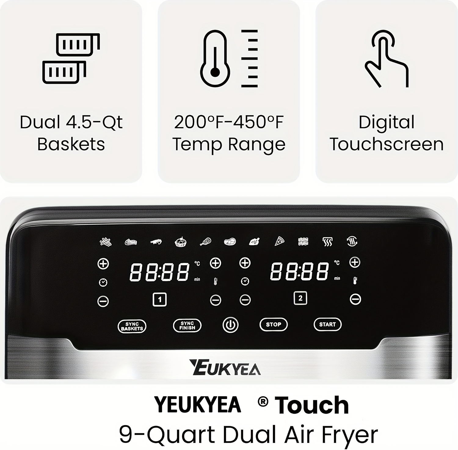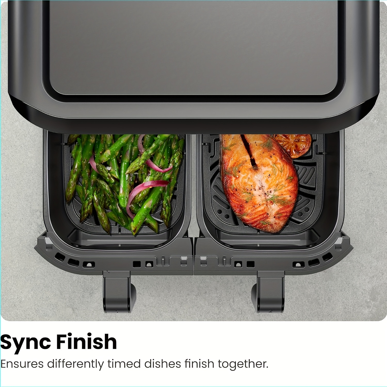 The sleek design of this air fryer is not just aesthetically pleasing; it's also built for durability and ease of use. The dual 4.5L baskets allow for simultaneous cooking, perfect for preparing meals for a large family or for catering purposes. The digital interface is user-friendly, making it easy to select the desired cooking time and temperature.**Optimized for Performance and Safety**