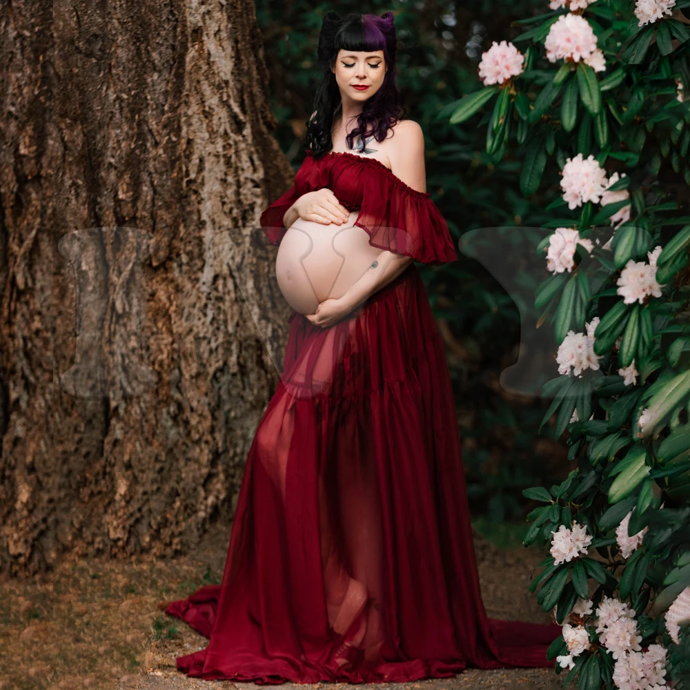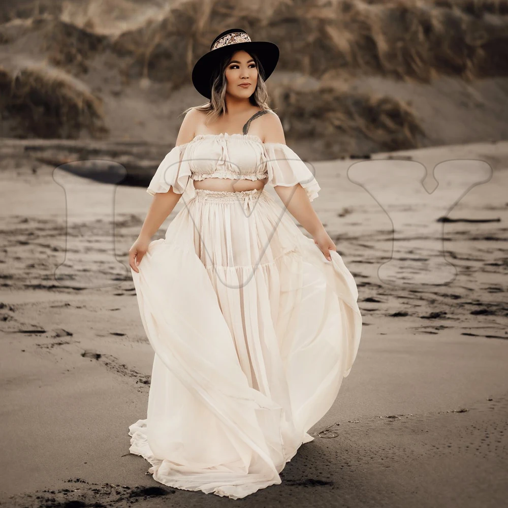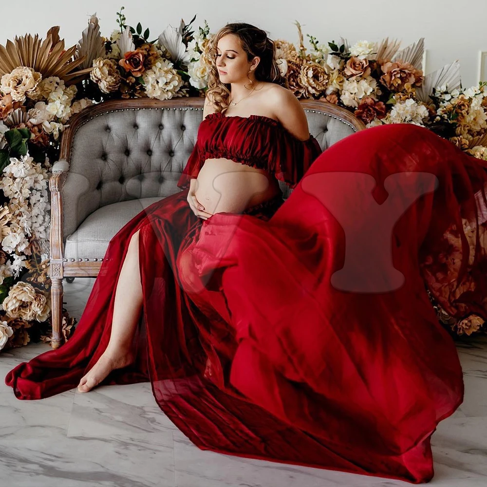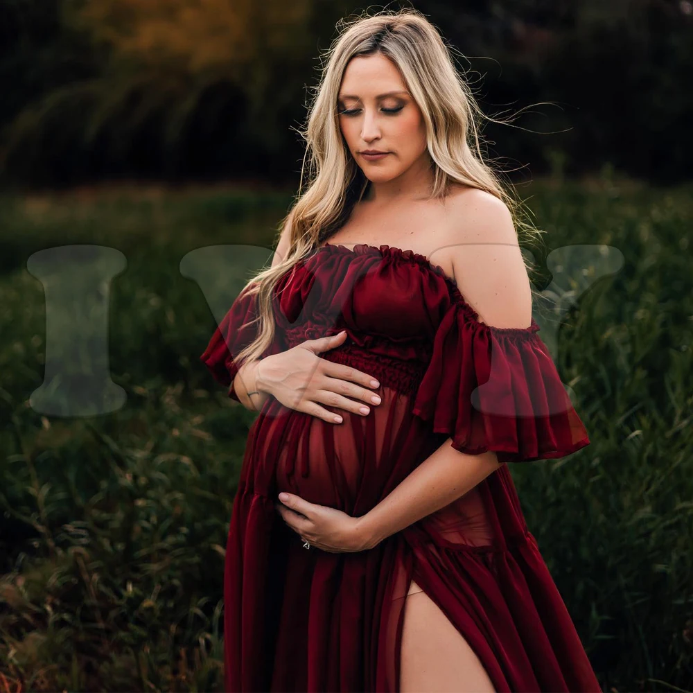 Pregnant Women Photoshoot Outfit For Women Ruffle Edge Short Sleeved Off Shoulder Chiffon Dress Maternity Dress For Baby Showers