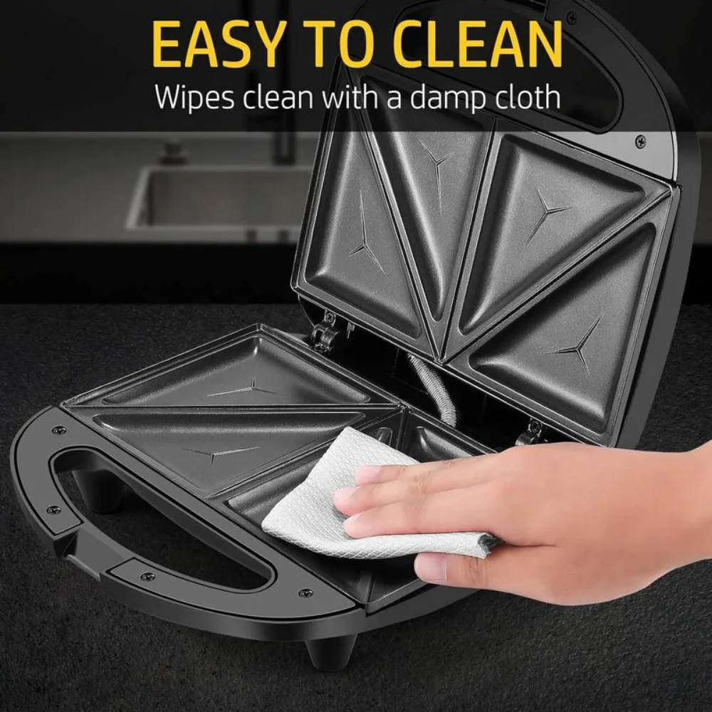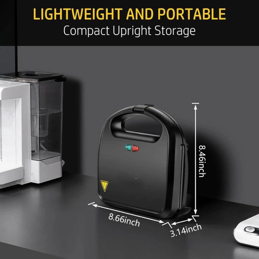 Make Hot Sandwiches and More: Get the sandwich maker, it cooks the hot sandwich maker quickly in the morning, lets you have the fast and healthy breakfast. The sandwich maker presses sandwiches, grills omelets, and even crisps French toast in one product. Simple and efficient.,750W High Power: Powered by 750W, the sandwich toaster heats up fast to make breakfast and have more time to get ready for work. Double cooking plates heats evenly that are crispy outside and tender inside.,Easy to Clean: Thanks to the non-stick grill plates, it ensures effortless food release and quick cleanup, simply wipe them clean with a damp cloth once they've cooled. The dimension of nonstick plates is 8.46x4.92in.,Indicator Lights and Cool Touch Handle: Power on and preheat lights let you know when it's time to cook, easy and convenient to use. Cool-touch locking handle for safe operation and convenient portability.,Perfect Kitchen Gift: The more durable non-stick coating allows for low-fat baking,water and oil repellent will provide you less cleaning job.