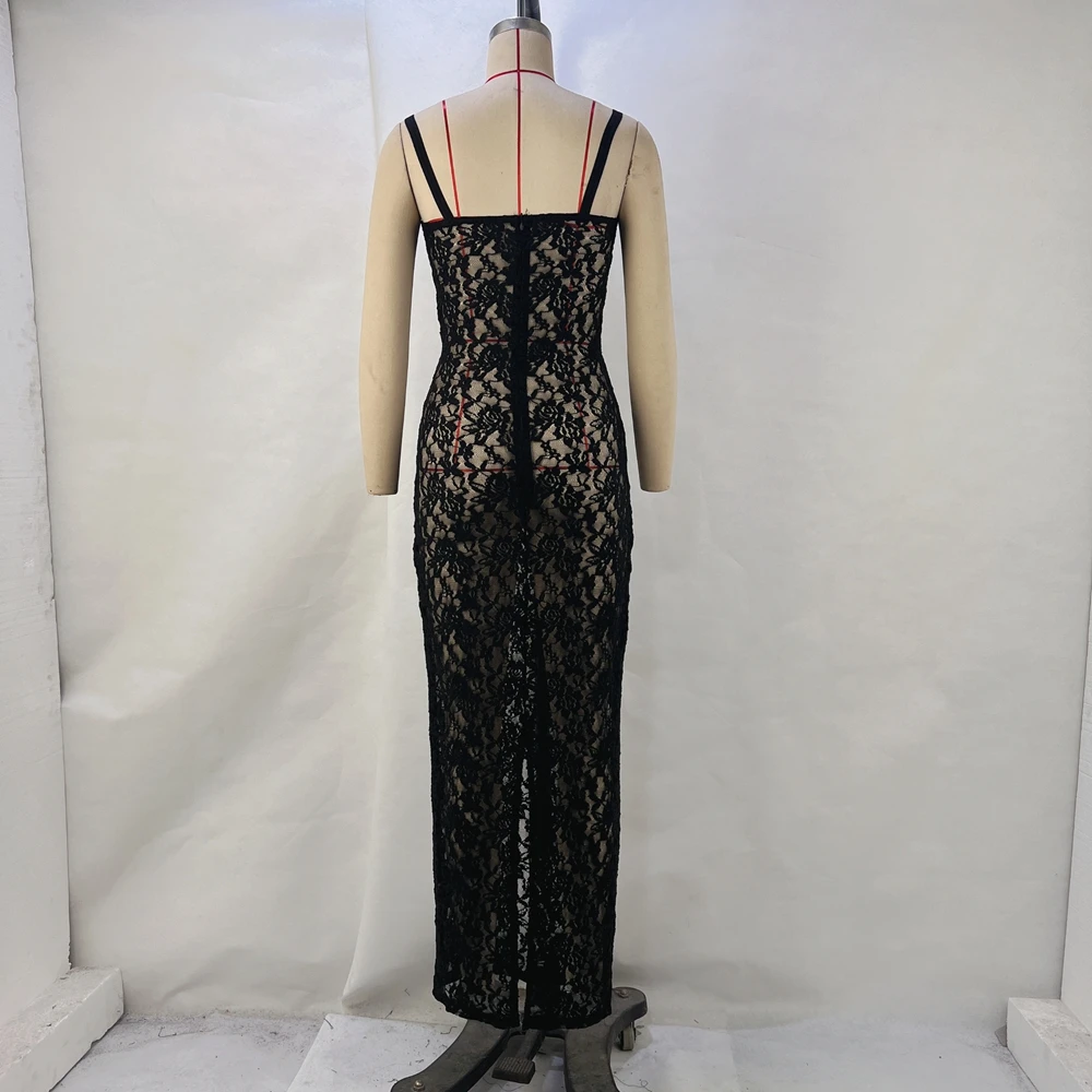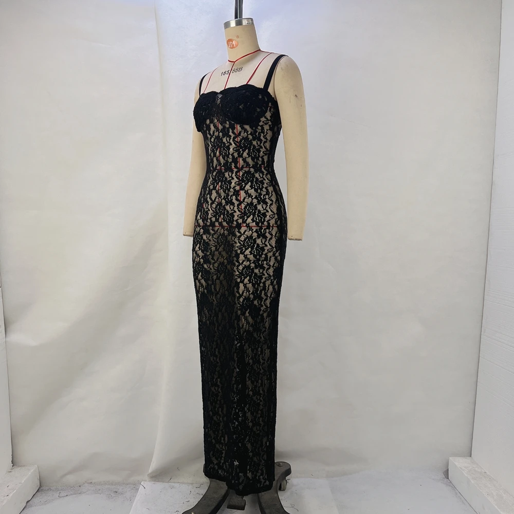 Summer New Fashionable Solid Color Sleeveless One Piece Neck Sexy Perspective La