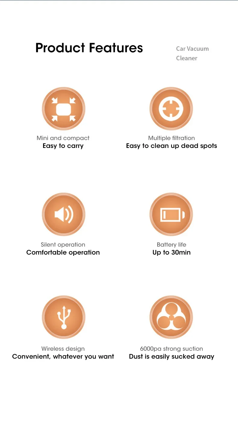 Wireless Car Vacuum Cleaner 6000Pa 120W Cordless Handheld Portable Vacuum High-power Air Blower For Home Office CarSpecifications: